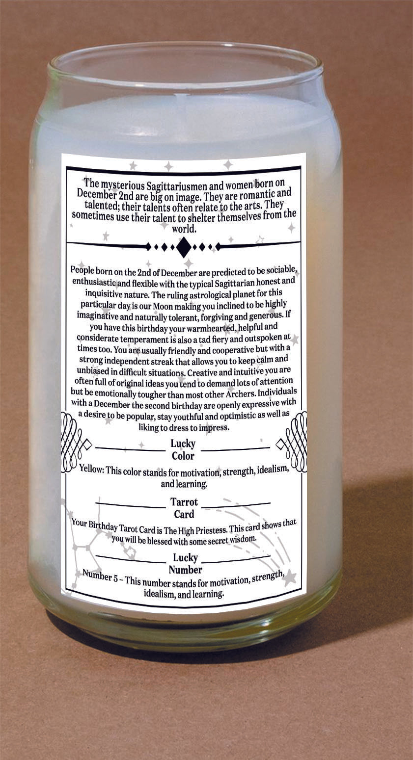People born on the 2nd of December are predicted to be sociable, enthusiastic and flexible with the typical Sagittarian honest and inquisitive nature. The ruling astrological planet for this particular day is our Moon making you inclined to be highly imaginative and naturally tolerant, forgiving and generous. If you have this birthday your warmhearted, helpful and considerate temperament is also a tad fiery and outspoken at times too. You are usually friendly and cooperative but with a strong independent streak that allows you to keep calm and unbiased in difficult situations. Creative and intuitive you are often full of original ideas you tend to demand lots of attention but be emotionally tougher than most other Archers. Individuals with a December the second birthday are openly expressive with a desire to be popular, stay youthful and optimistic as well as liking to dress to impress. Ordinarily warm, cheerful and loyal you can in addition occasionally be prone to be moody, lazy or overly idealistic.