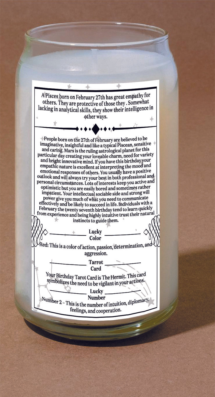 People born on the 27th of February are believed to be imaginative, insightful and like a typical Piscean, sensitive and caring. Mars is the ruling astrological planet for this particular day creating your loveable charm, need for variety and bright innovative mind. If you have this birthday your empathic nature is excellent at interpreting the mood and emotional responses of others. You usually have a positive outlook and will always try your best in both professional and personal circumstances. Lots of interests keep you active and optimistic but you are easily bored and sometimes rather impatient. Your intellectual sociable side and strong will power give you much of what you need to communicate effectively and be likely to succeed in life. Individuals with a February the twenty seventh birthday tend to learn quickly from experience and being highly intuitive trust their natural instincts to guide them.